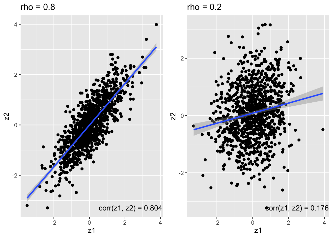 x2 <- sqrt(1- rho**2) * rnorm(n) + (rho * x1)